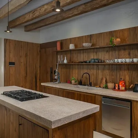 A acomodação de Tulum dispõe de cozinha totalmente equipada com chaleira elétrica, refrigerador e forno. - ❓